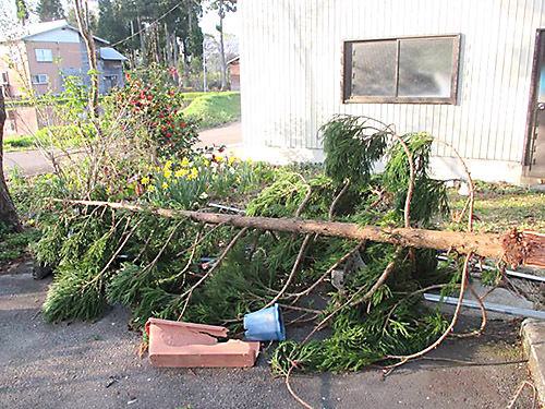 洗濯物の物干し竿ごとなぎ倒しました。家を直撃されなくてよかった。