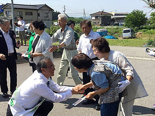 県内には様々な課題が山積しています。例えば、一層進展している高齢化。私は地域特性を踏まえ、各医療機関の特色をいかしつつ、地域の中で安心して医療が受けられる一貫した医療提供体制を確保します。 胎内の皆様、炎天下の中お集まりくださり感謝申し上げます!