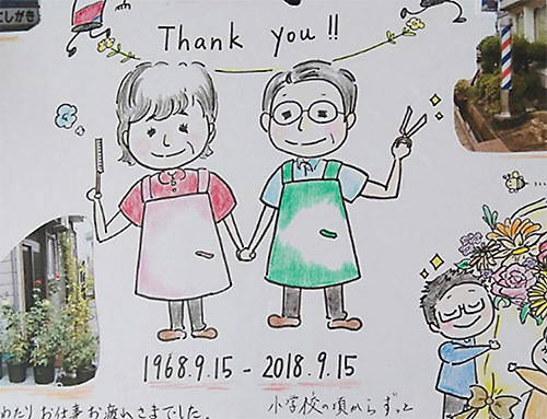 .....寄せ書きはこの理容院をこよなく愛したS家庭からのプレゼントです。二人の姿がとっても素敵だったので、写真にとらせてもらいました。
