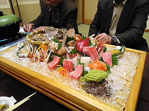 ところで本日はお招きを受けてこんな海の幸を始めていただきました。カニはかまた で!