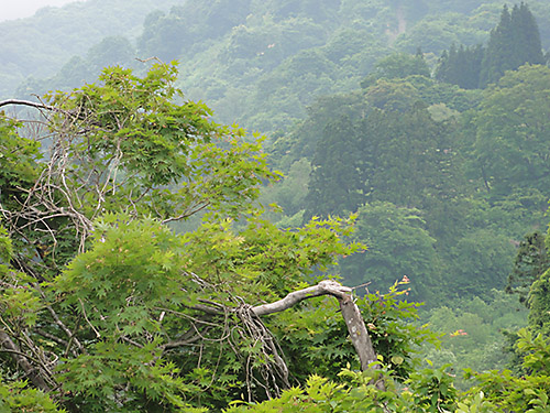 私たちは深山荘までバスで行き、そこから牧区民の水を守っている浄水場まで、片道4キロくらいの山道を歩きました。