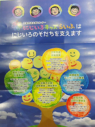 「にじいろキッズらいふ」には、障害を持った子供たちへの支援を多角的に行う工夫がされていました。施設が新しくて、ミーティングルームもたくさんあり、利用している親御さんたちの顔も明るくて安心しておられるようでした。