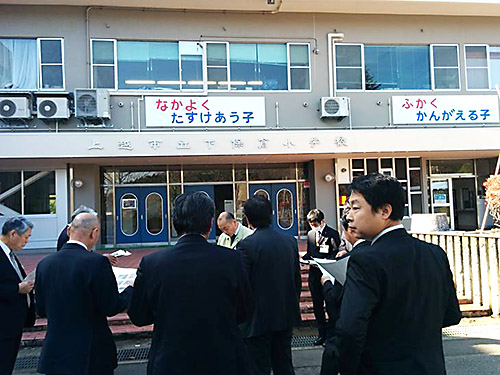 飯小はほぼ完成していますので、来年早々に新校舎で授業が始まる予定です。有田地区の小猿屋小と春日小の統合校に関しては、約二年間の建設期間をめどに、 まだ敷地工事が始まったばかりです。交通量が多い地域なので、しっかりと地域の住民と相談して、安全な通学路を確保していただきたいです。浦川原統合校は 区の中央に位置する下保倉小学校が使われます。大きな改修工事ではありませんが、使い勝手の良い校舎にして、子供たちが活き活きと活動できるようにしてい く予定です。最後はここで子供たちと給食を一緒にいただいてきました。